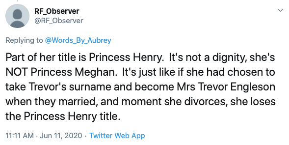 No, I’m talking about people who legitimately believe that Meghan Markle is a princess – official royal title and all.