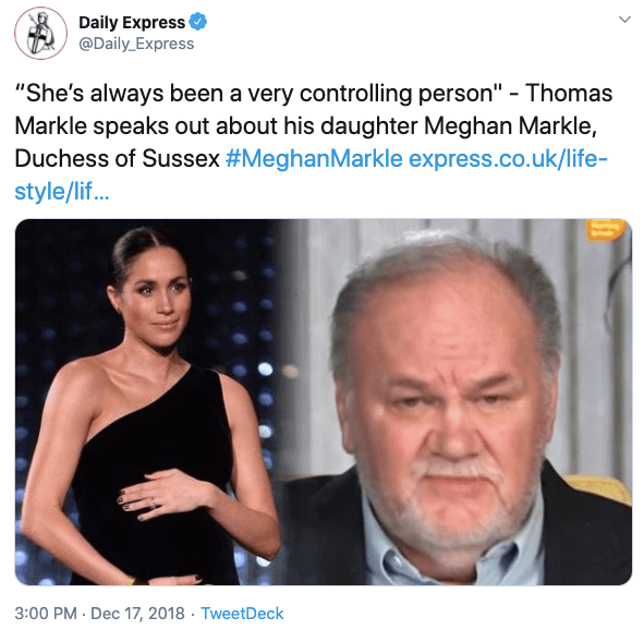 Poor old Thomas was to learn the hard way that Meghan Markle isn’t daddy’s little girl anymore. She’d sell anyone out if the price were right.