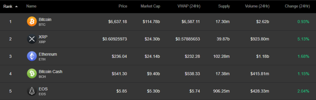 On Saturday, Bitcoin closed above the $6,550 zone and rebounded to $6,630, which has led the majority of small market cap cryptocurrencies in the global market to recover.